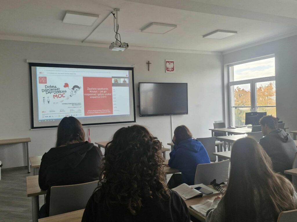 Z radością informujemy, że pedagodzy szkolni nawiązali współpracę z Fundacją Dajemy Dzieciom Siłę 💪. W ramach tej współpracy nasza szkoła została zaproszona do udziału w szkoleniu dla uczniów pt. „Kryzys – jak go rozpoznać i gdzie szukać pomocy”.