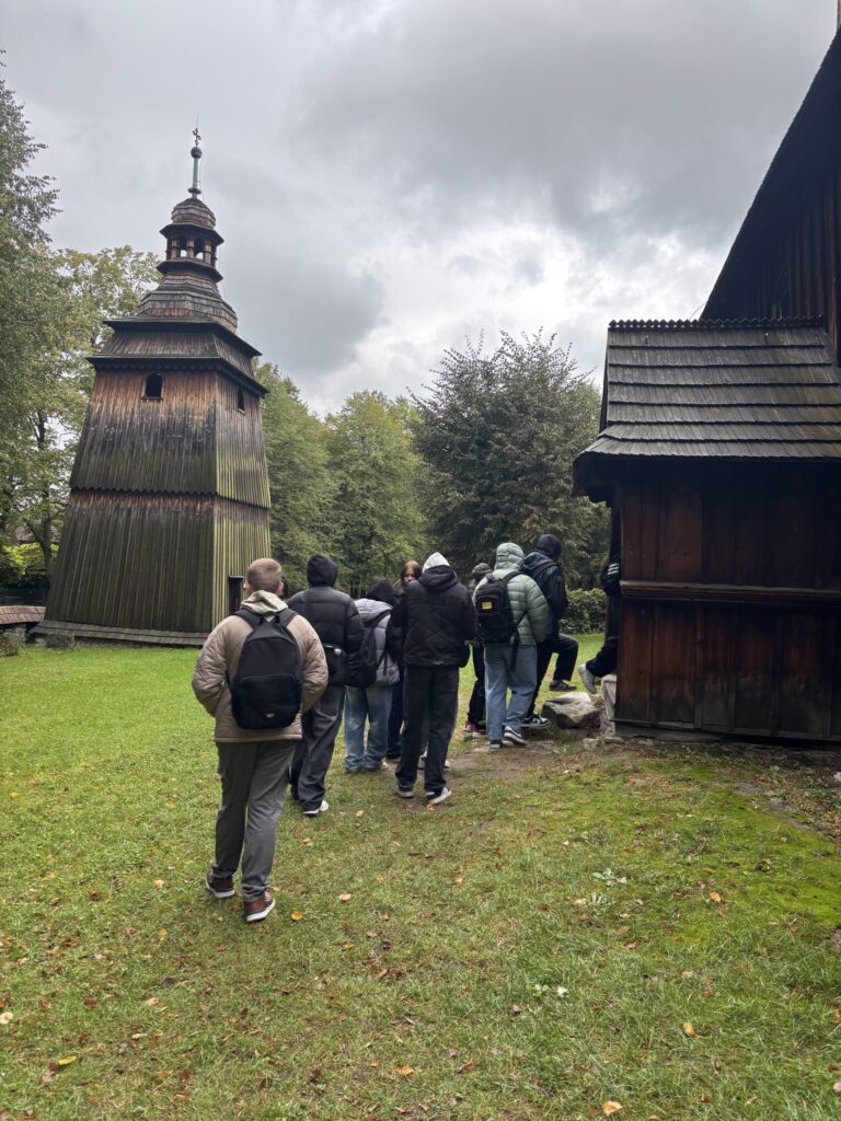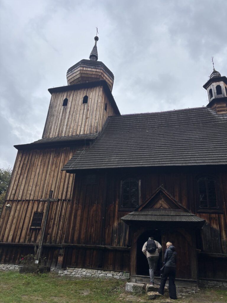 Na terenie skansenu w Wygiełzowie znajduje się drewniany kościół z Ryczowa z początku XVII wieku, pw. Podwyższenia Krzyża Świętego. Bryła kościoła składa się z dwóch członów: z korpusu nawy o trójbocznie zamkniętym prezbiterium oraz z wieży dobudowanej w XVIII wieku, nakrytej baniastym hełmem. Do wnętrza kościoła prowadzą drzwi z nadprożem o wykroju w tzw. „ośli grzbiet”.