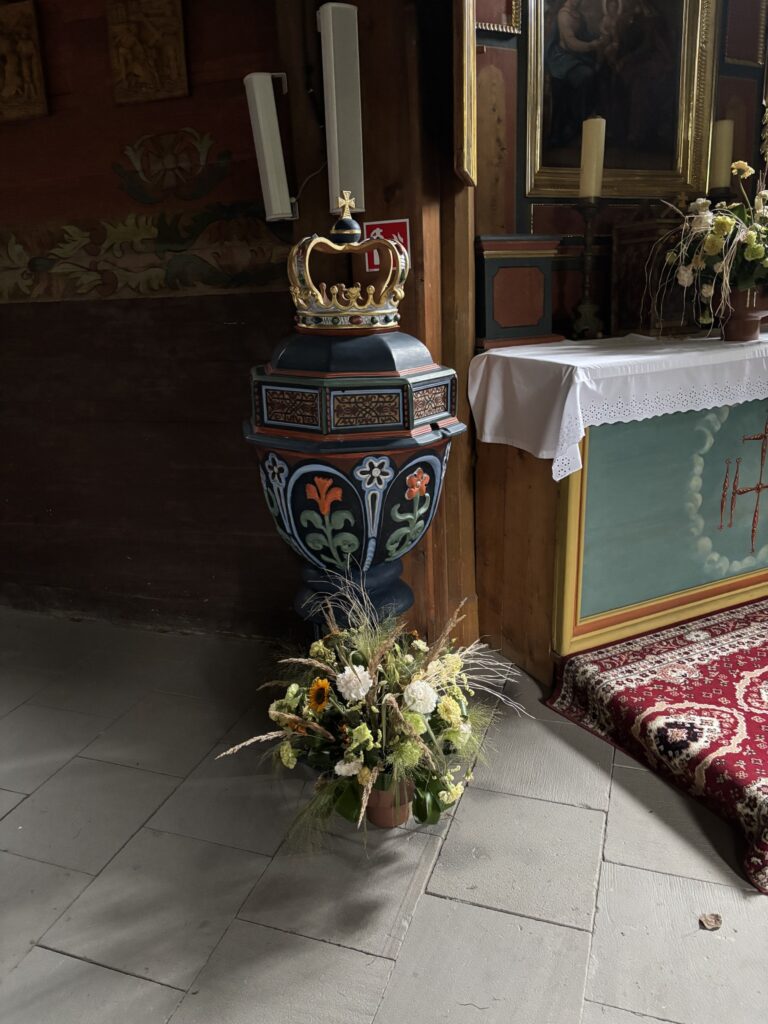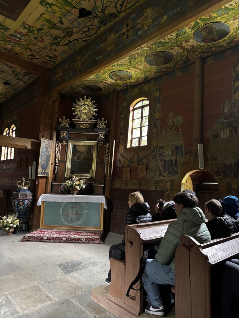 We wnętrzach zachowało się wyposażenie pochodzące z okresu od XVII do XIX wieku, które pozyskano wraz z obiektem.