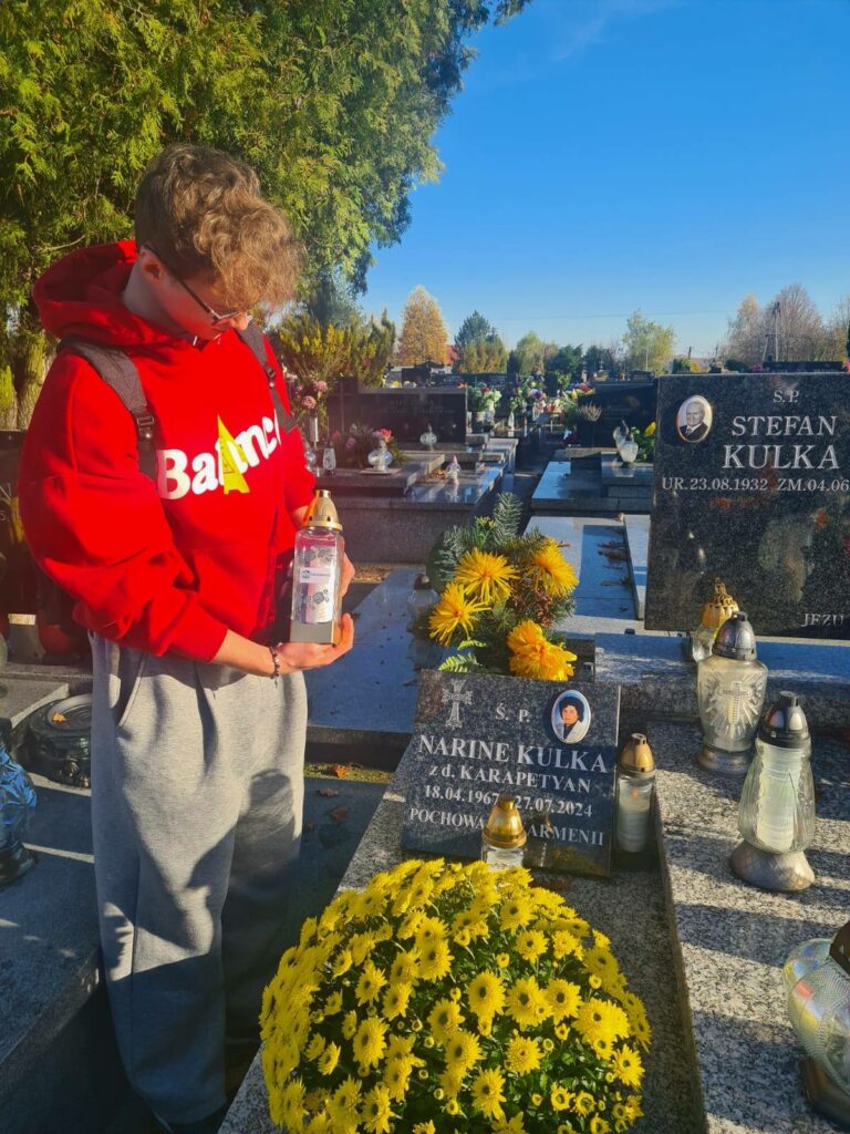 Z okazji uroczystości Wszystkich Świętych uczniowie naszej szkoły odwiedzili groby zmarłych nauczycieli, zapalając znicze i wspominając ich z wdzięcznością.