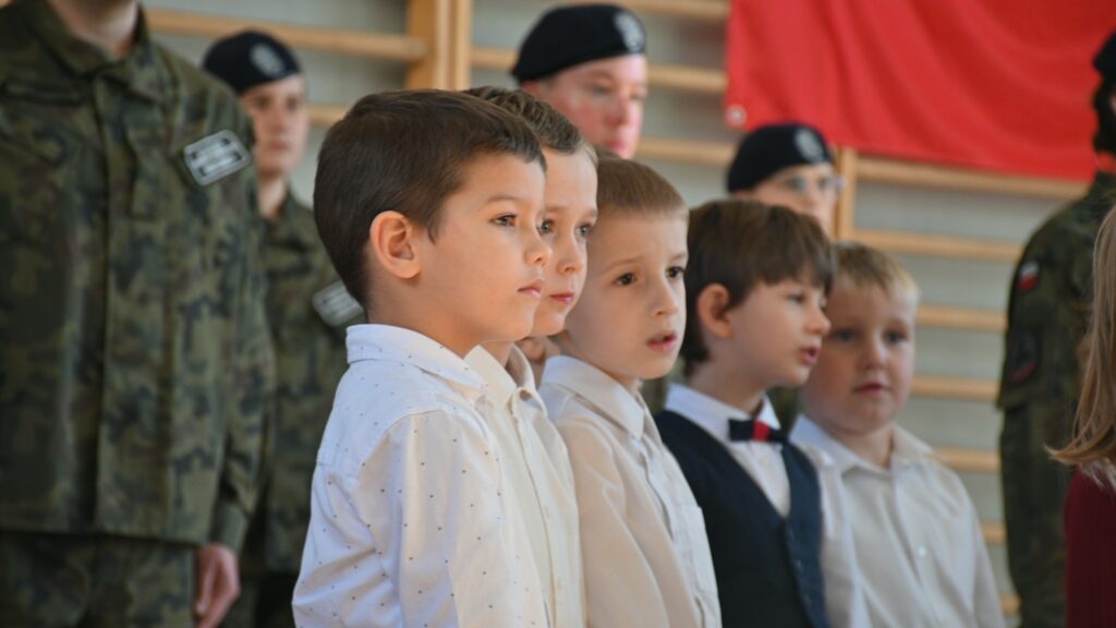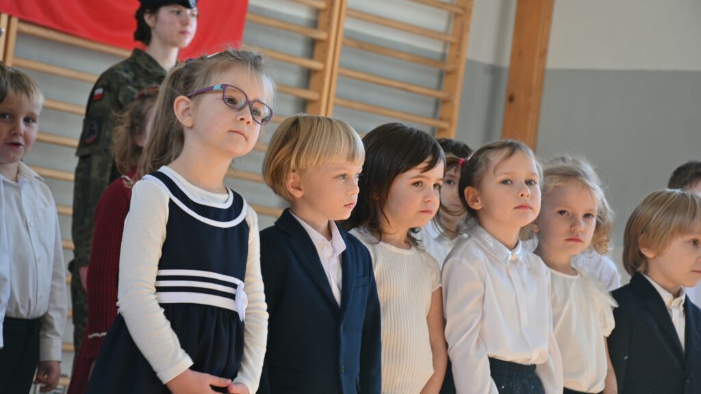 W pięknej, patriotycznej atmosferze zaprezentowali się uczniowie oraz najmłodsi goście – grupa przedszkolaków, która swoim występem wzruszyła i zachwyciła publiczność.