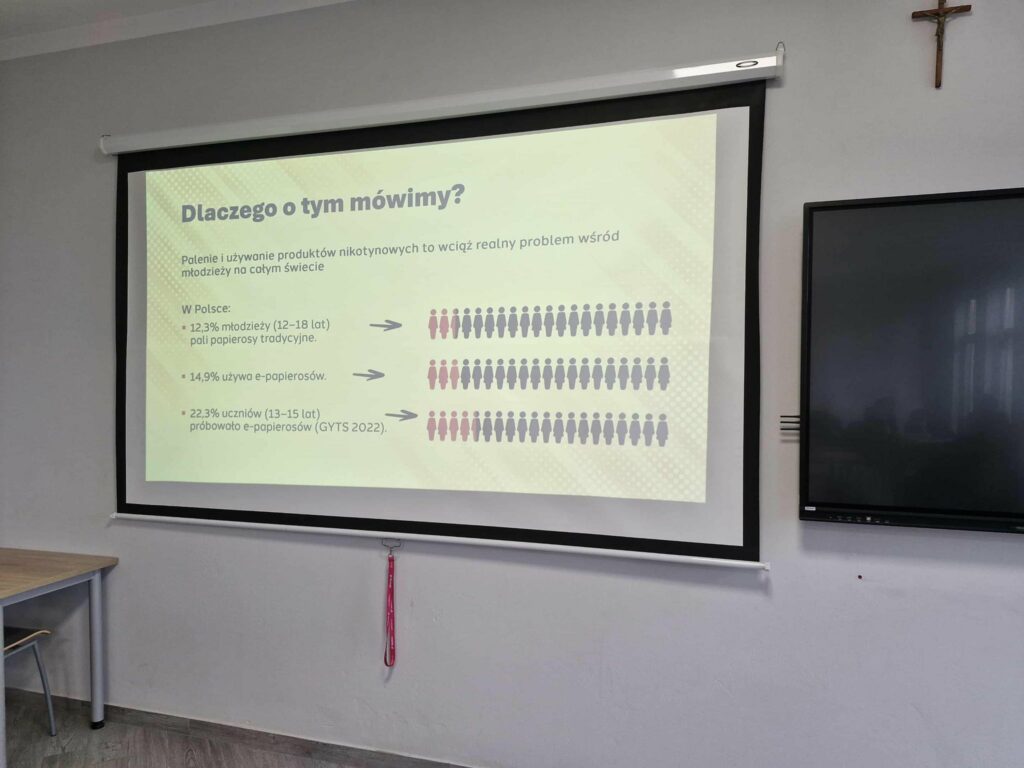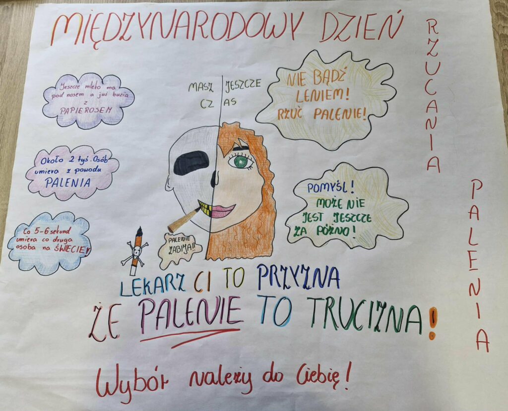 Podczas zajęć uczniowie tworzyli plakaty profilaktyczne, a także obejrzeli prezentację przygotowaną przez Państwową Inspekcję Sanitarną pt. „Nowe formy – stare pułapki. Życie bez nikotyny – wybór, który się opłaca”.