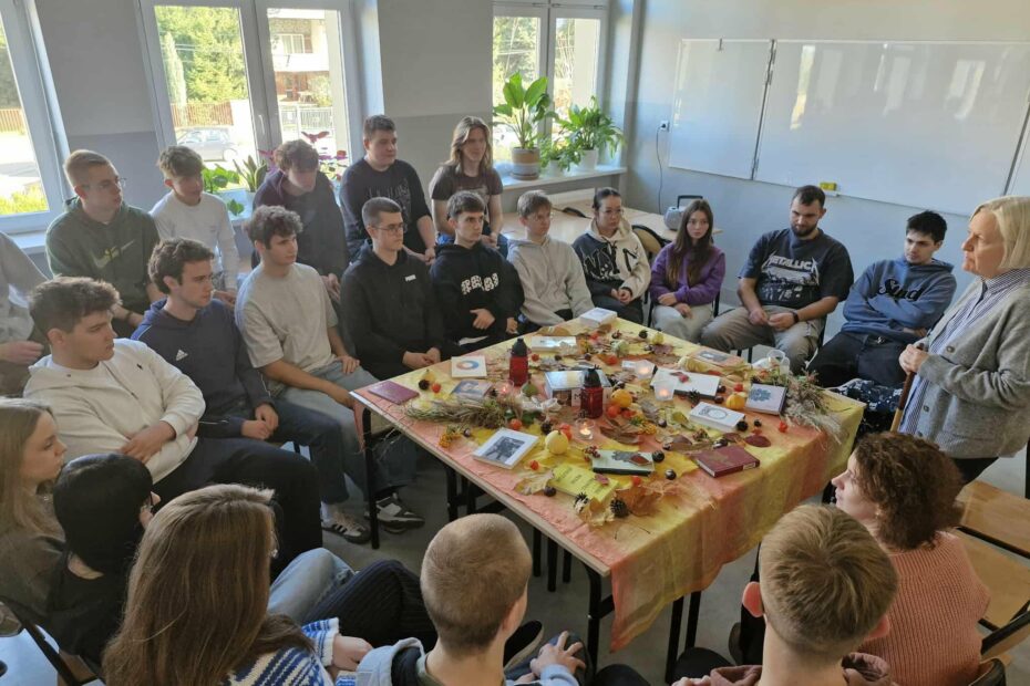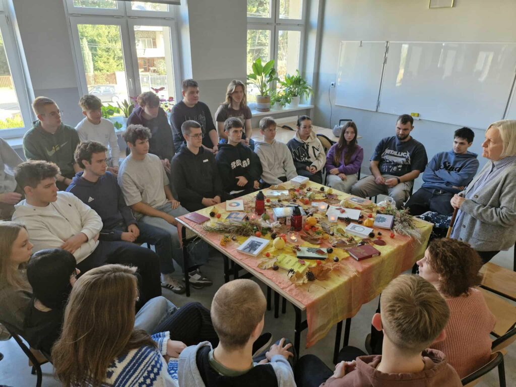 Podczas wieczornicy przypomnieliśmy sobie łacińskie powiedzenie Non omnis moriar, oznaczające „nie wszystek umrę”. Wyraża ono przekonanie o nieśmiertelności dzięki swojej twórczości, a motyw ten został zapoczątkowany przez rzymskiego poetę Horacego. Cytat ten często pojawia się w kontekście artystów, którzy wierzyli, że ich dzieła zapewnią im wieczną pamięć. Przy akompaniamencie refleksyjnej muzyki i w otoczeniu jesiennej dekoracji, czytaliśmy znane i te trochę zapomniane utwory – wszystkie piękne i nostalgiczne, jak przystało na aurę za oknem i tematykę spotkania.