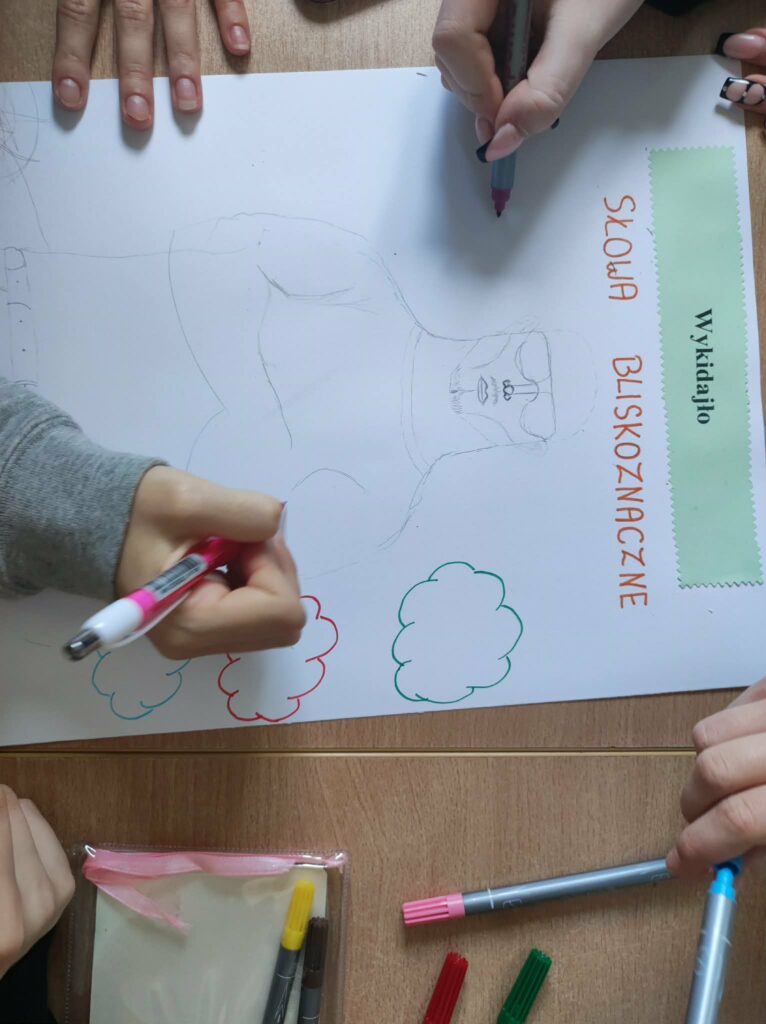Podczas lekcji nie było tradycyjnego dyktanda ani analizy składniowej. Zamiast tego pojawiły się językowe wyzwania: tworzenie krótkich opowiadań z wykorzystaniem archaizmów, odgadywanie znaczenia staropolskich słów czy układanie współczesnych dialogów z wplecionymi dawnymi zwrotami. Śmiech i twórcza atmosfera sprawiły, że uczniowie szybko zapomnieli o stresie związanym z poprawnością językową. Szczególnym zainteresowaniem cieszyła się zabawa polegająca na „ratowaniu słów od zapomnienia”. Każda grupa losowała jedno rzadko używane słowo i miała za zadanie tak je zaprezentować, by zachęcić innych do ponownego wprowadzenia go do codziennego języka.